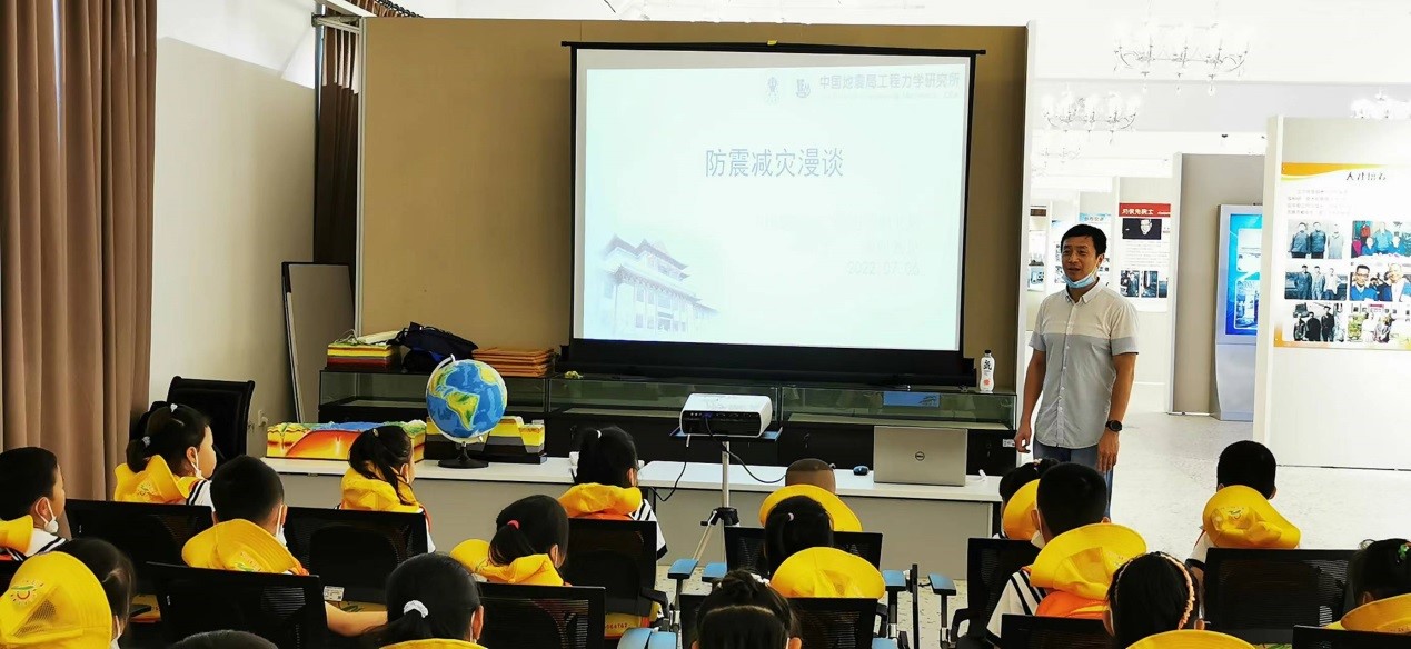 發布時間: 2022-07-07 點擊數量:3087為更好的宣傳防震減災知識,從小培養幼兒防震減災意識,蘭寧幼兒園于7月7日到我所開展了豐富多彩的地震科普宣傳活動。